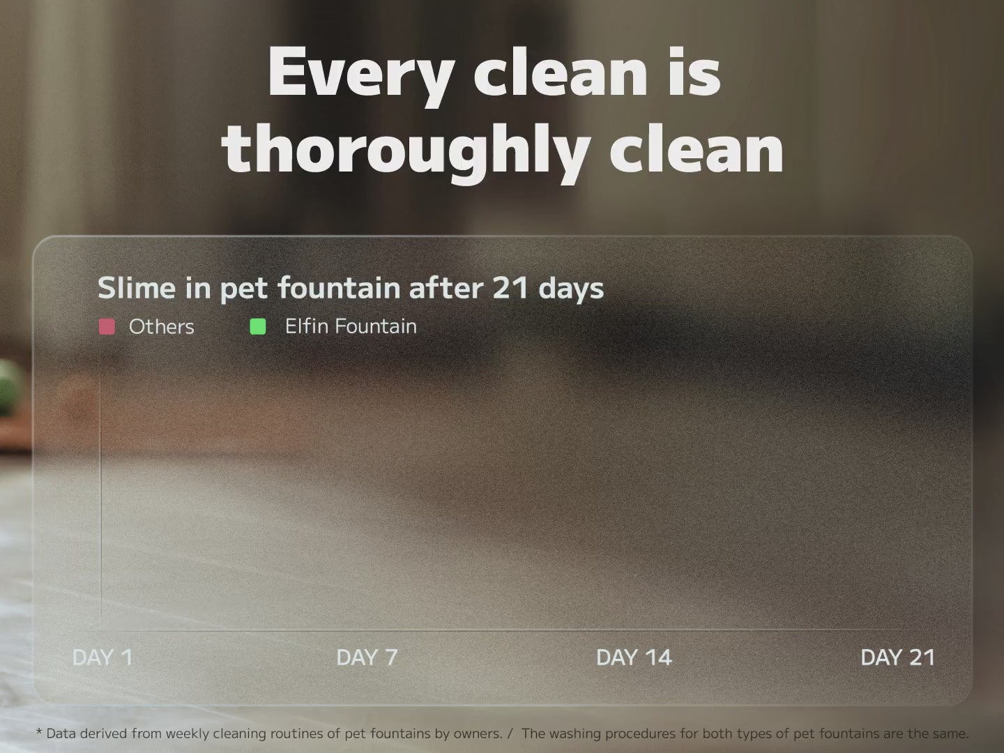 Elfin Fountain's multi-layer filtration effectively removes hair and particles, ensuring every sip is fresh and tasty.