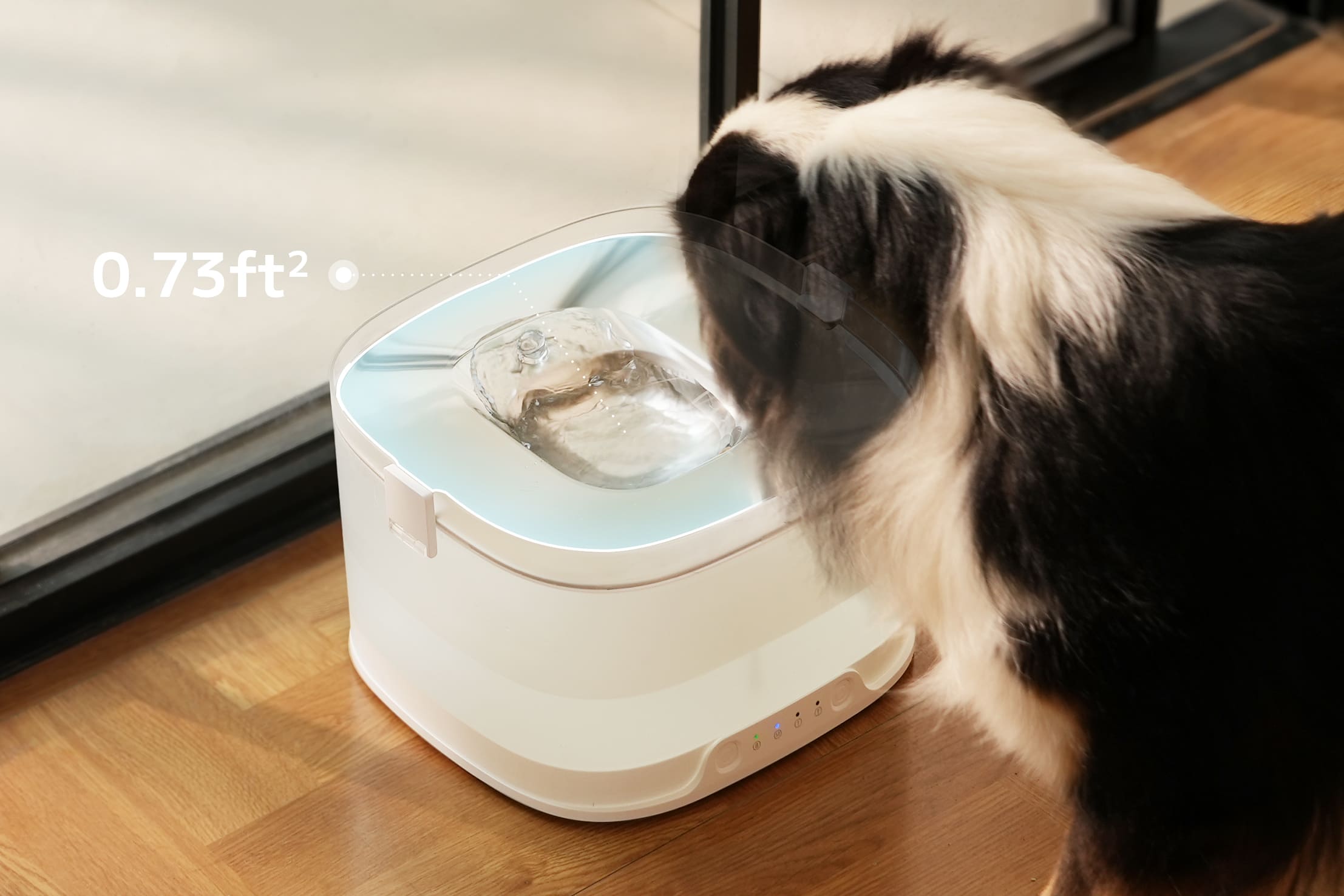 Its wide, low-spill surface (0.73 ft²) ensures stable, mess-free hydration with every sip, even for the most energetic pups.