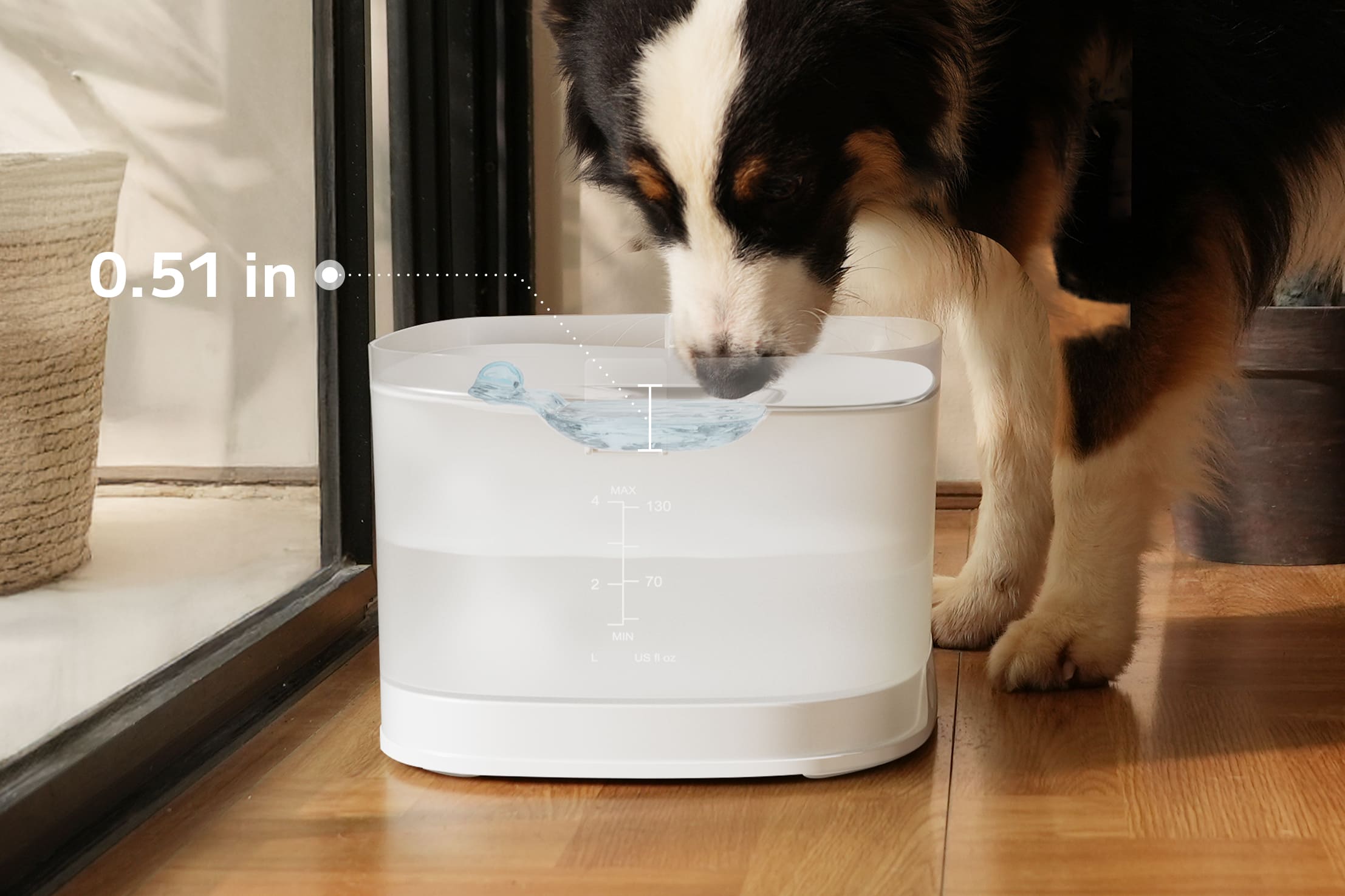 The Elfin Fountain D1 Pro is perfect for a wide range of dog sizes. Whether you have a Dachshund or a Labrador, its 5.4" height provides a steady flow of fresh water for most dogs.